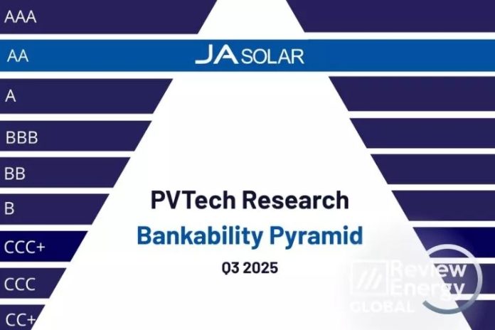 JA SOLAR, a global leader in high-performance photovoltaic products, has once again received the top AA rating in the Q3 2025 PV ModuleTech Bankability Report, released by PV Tech and Informa Markets. This recognition highlights the company’s solid financial foundation and sustained global competitiveness within the solar industry.