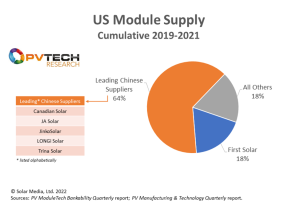 During the three year period 2019 to 2021, First Solar and the five leading Chinese module suppliers accounted for 82% of all module shipments to the US market. During 2022 and 2023, many of the companies contributing to the All Others segment will go through a period of increased shipments.