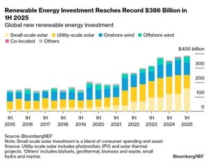 This trend continued in early 2025. In the first half of the year, companies put $386 billion into new renewable projects. This is a 10% rise from last year.