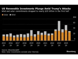 However, investment in U.S. wind and solar fell by 13% compared to the same time in 2024. The decline followed political shifts that created uncertainty for developers, especially in wind energy.