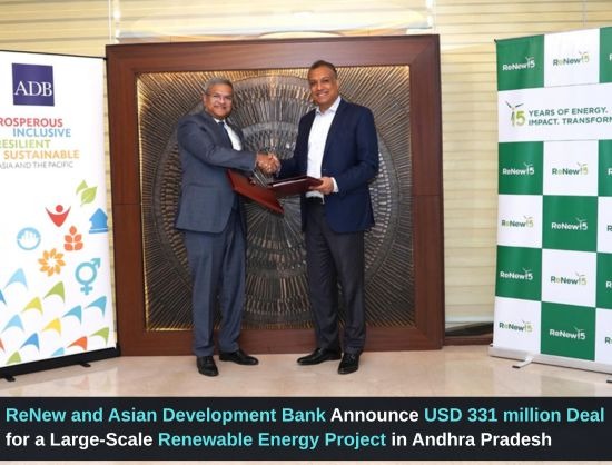 ReNew Energy Global has announced that it has secured USD 331 million from the Asian Development Bank (ADB) to develop an 837 MWp wind-solar hybrid plant with 415 MWh battery energy storage system (BESS) in Andhra Pradesh.