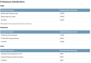 Other manufacturers named in the preliminary affirmative determination are Mundra Solar in India and Solarspace and VSUN in Laos, however all three companies have the same rate as other companies in their respective countries, as shown below.
