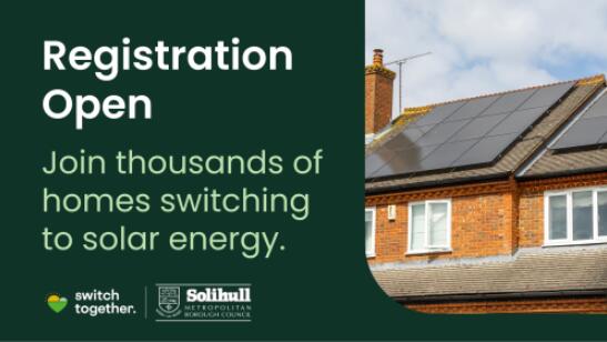 People can register for free, with no obligation, from Monday 23 February to Sunday 26 April by visiting Solihull Council’s Switch Together Solar webpage: https://www.solihull.gov.uk/your-future-solihull/switch-together-solar